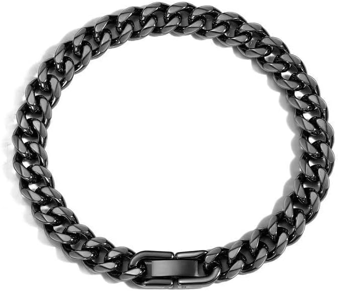 Mens Bracelet Cuban Link: Cuban Chain Wrist Bracelets with Stainless Steel Closure, Black Silver Gold Link Bracelets for Men