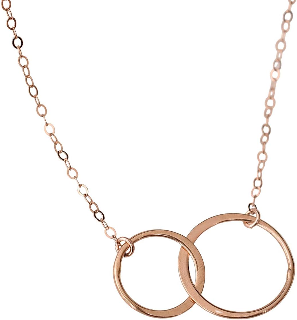 Designed by Stacey Handmade Two Interlocking Circles Necklace, 14K Rose Gold-Filled Chain, Sentimental Jewelry Gifts for Women, Golden Birthday, Christmas, Anniversary, 16 to 18" Adjustable Chain