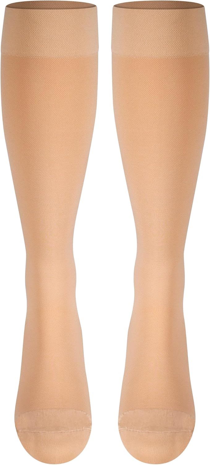 NuVein Medical Compression Stockings, 20-30 mmHg Support for Women & Men, Microfiber Knee Length, Closed Toe, Beige, Medium