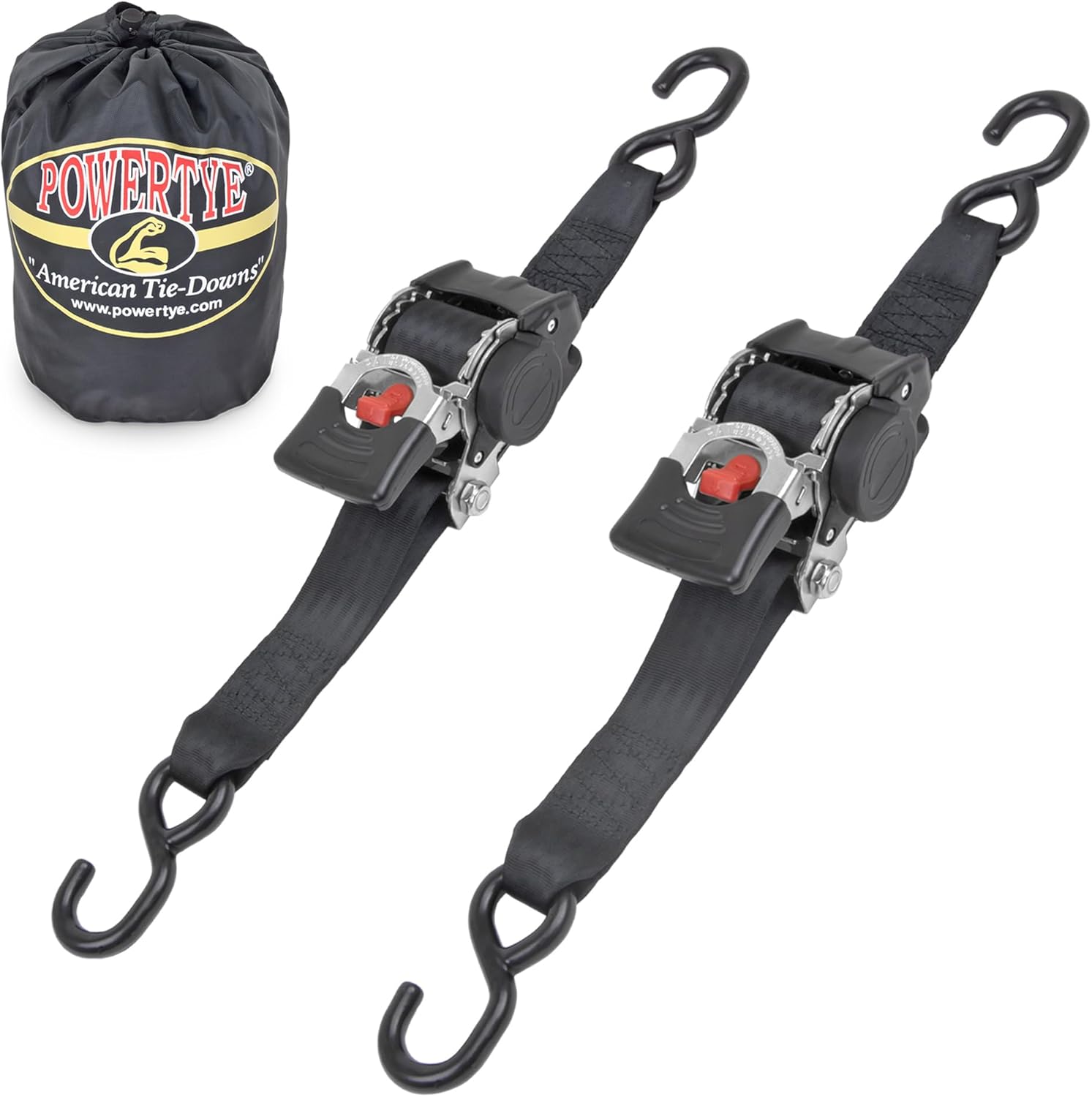 - QUALITY YOU CAN TRUST: PowerTye MFG stands behind our products. Our retractable ratchet tie-down straps are trusted by riders, movers, and weekend adventurers who demand strong, secure cargo control. Many have tried to imitate PowerTye's Original Designs for Tie-downs, Ratchet Straps, Cargo Nets and other products, but none can match our Quality, Performance, Value or Exceptional Service. For all your Motorcycle, ATV, Golf Cart, Watercraft and Cargo hauling needs, trust PowerTye.