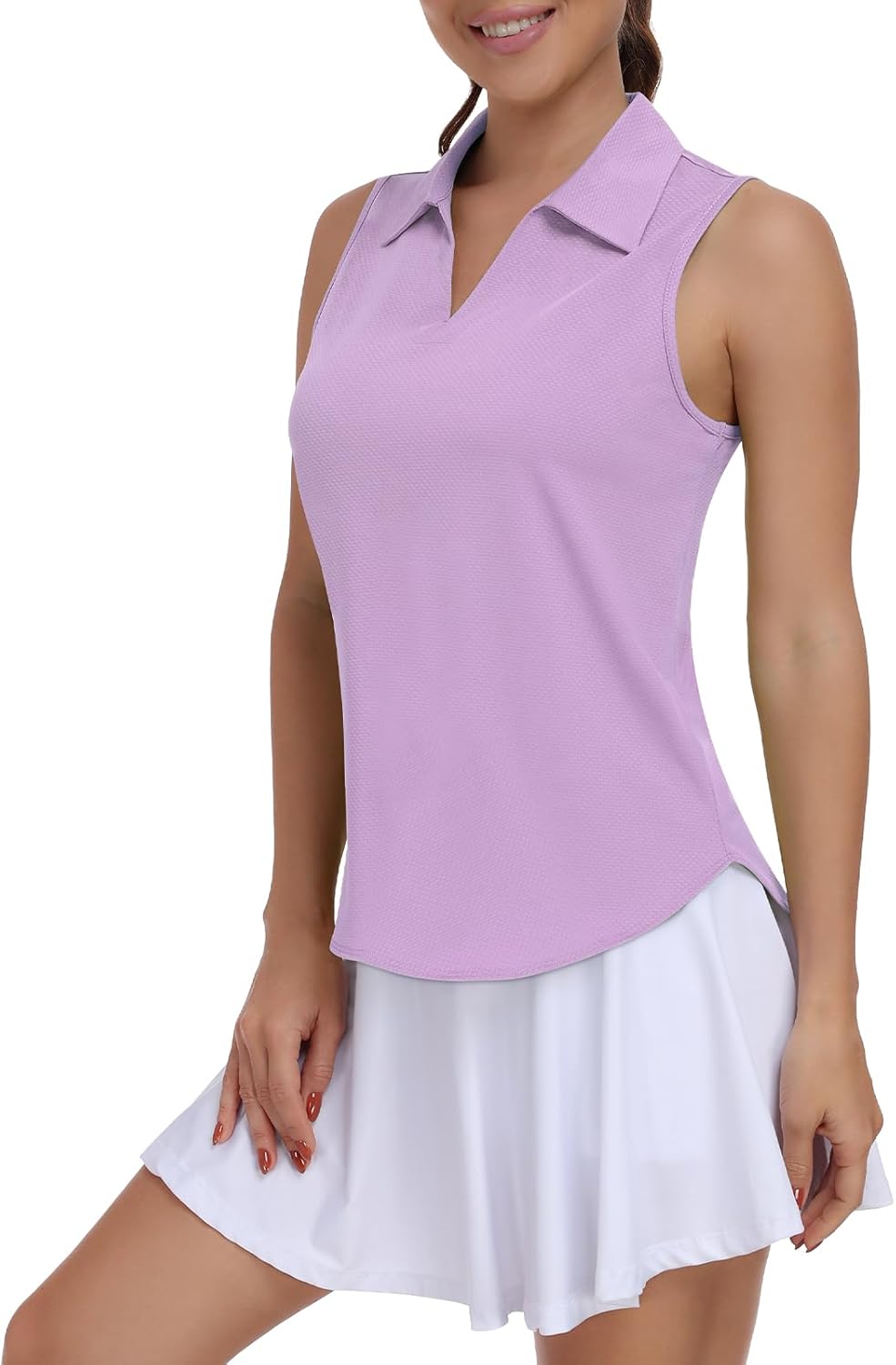Women Golf Shirts UPF 50+ Tennis Polo Shirts Dry Fit Lightweight V-Neck Sleeveless Collared Tank Tops