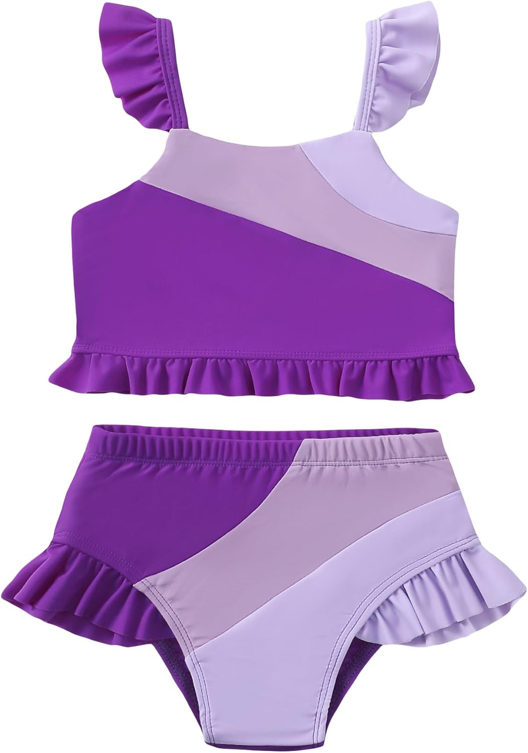 Mioglrie Toddler Baby Swimsuit Girl Summer 2 Piece Girl Bathing Suit 2T-6T Girls Tankini Color Block Bikini Swimwear