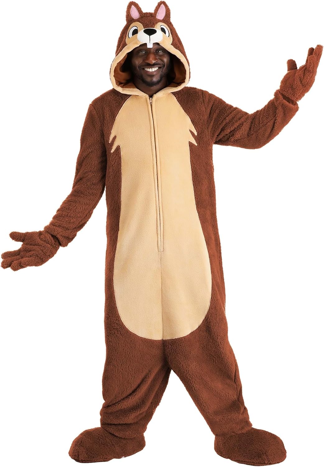 Disney Chip 'n Dale Chip Costume for Adults - Hooded Jumpsuit with Gloves & Shoe Covers - Officially Licensed