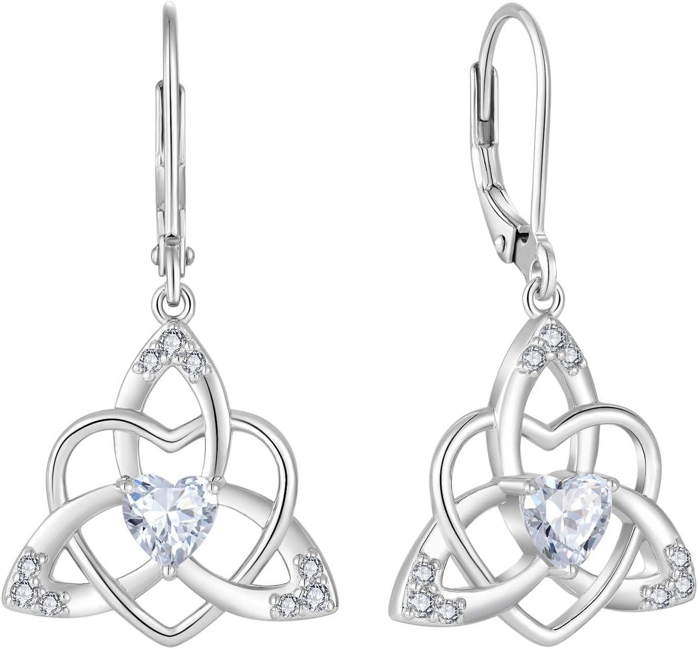 FJ Celtic Knot Earrings 925 Sterling Silver Dangle Drop Birthstone Earrings Irish Good Luck Jewelry Gifts for Women