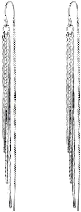 Solid 925 Sterling Silver Chain Dangle Earrings Trendy Long Tassel Earrings for Women Gifts