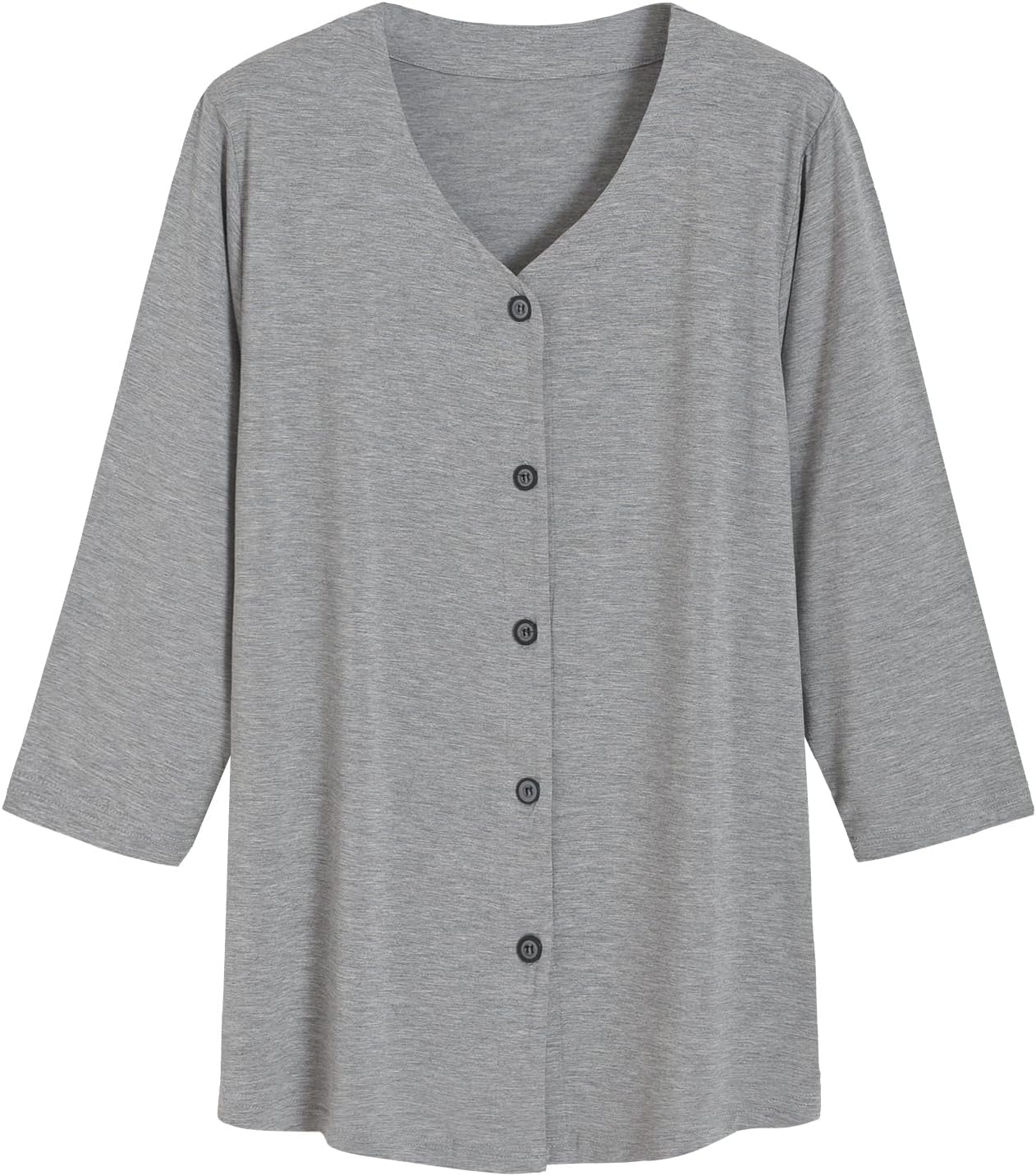 Latuza Women's 3/4 Sleeve Button Up Pajama Top Bamboo Viscose V Neck Sleep Shirt