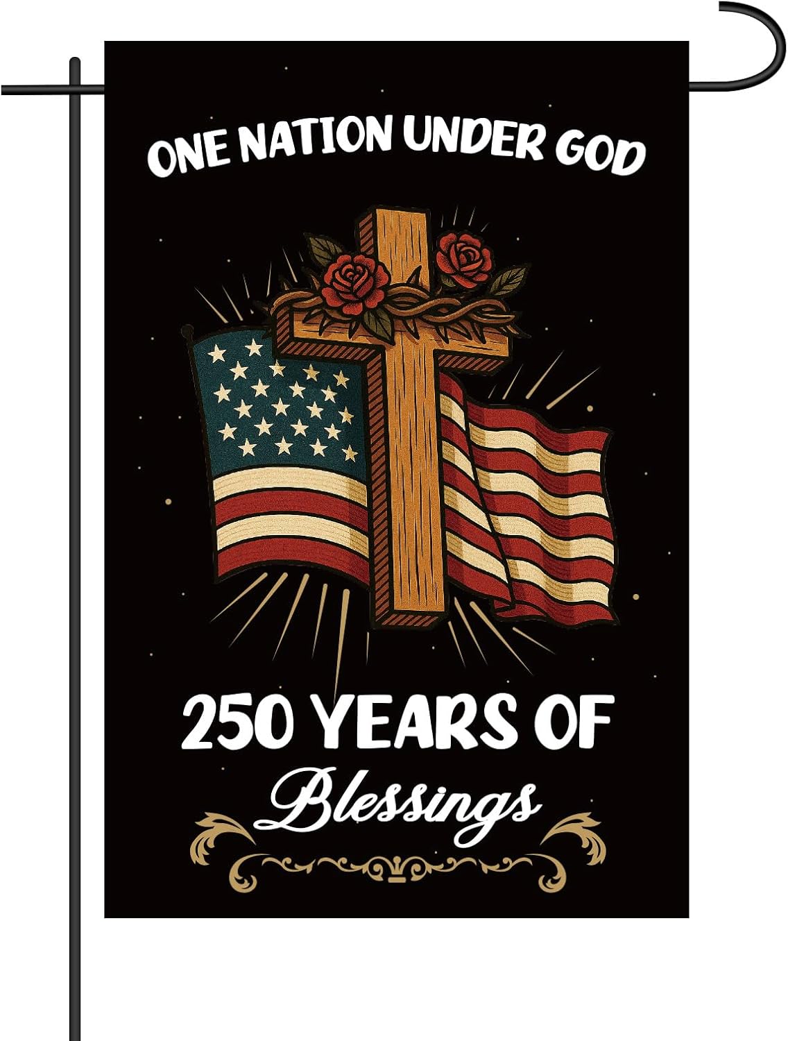 Anniversary USA Garden Flag, Years America Double Sided One Nation Under God Yard Flag with Patriotic Cross Design for Patio Lawn Yard Outdoor Decoration, 18 x 12 Inch