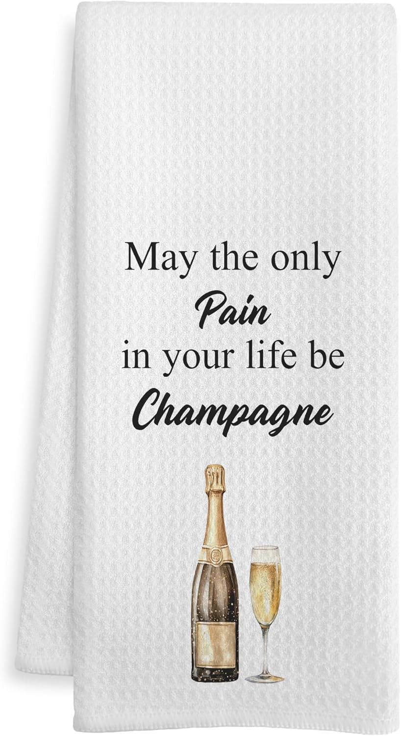 Funny Champagne Kitchen Bar Towels, Gifts for Champagne Lovers Dish Tea Towel, Alcohol Lover Gifts Decorative Hand Towels for Kitchen Home Bar Cart Decor, 16x24 Inch