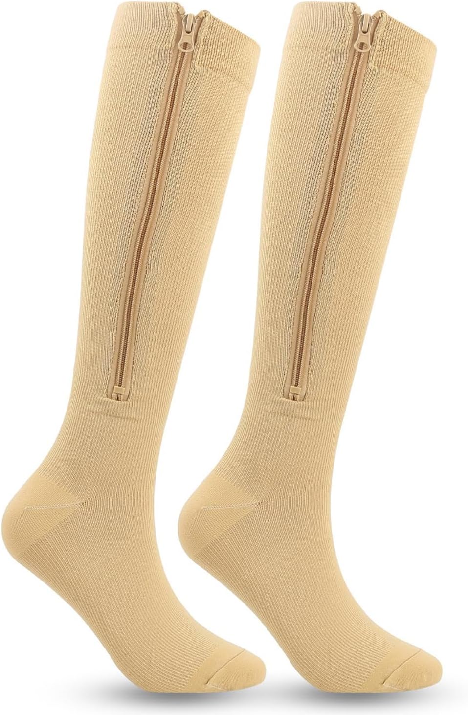 Zipper Compression Socks 15-20mmHg Closed Toe Compression Stocking with Zipper Swelling Edema for Women and Men