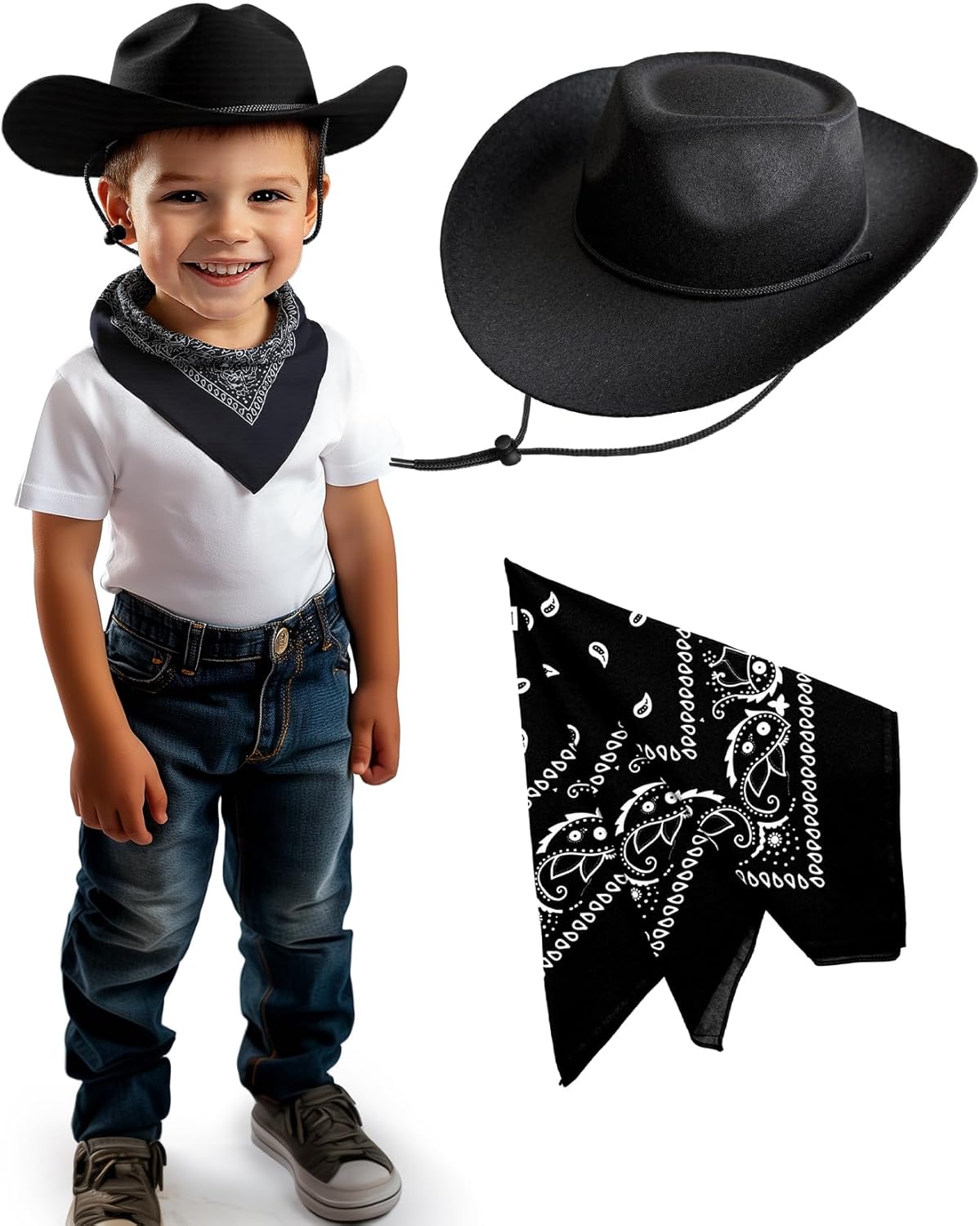 SeptCity Toddler Cowboy Hat and Bandana, Cowgirl Costume Set for Boys and Girls