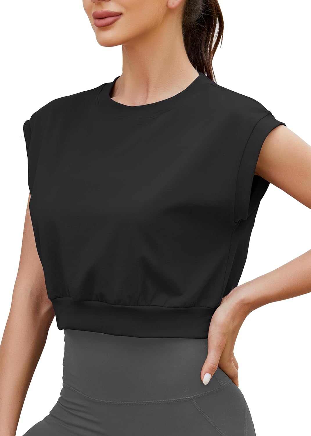 Mippo Crop Top Workout Tops for Women Loose Fit Cap Sleeve Athletic Gym Yoga Tank Tops