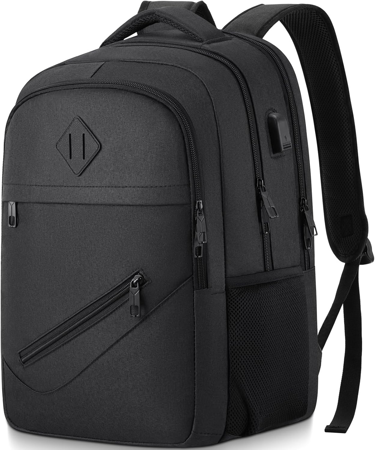 - Sturdy Material & Solid: Made of Water Resistant and Sturdy Polyester Fabric with metal zippers. Ensure a secure & long-lasting usage everyday & weekend. Serve you well as professional office work backpack, slim USB charging backpack, perfects for business traveling, weekend getaways, shopping & outdoor activities in daily life, making your journey and travelling more convenient wherever you go.