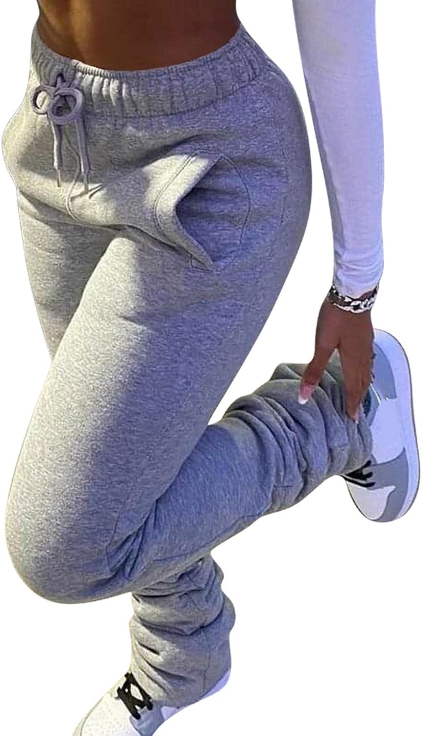 Famnbro Women Stacked Sweatpants Thick Warm Fleece Lined Pants Drawstring Waist Ruched Active Joggers