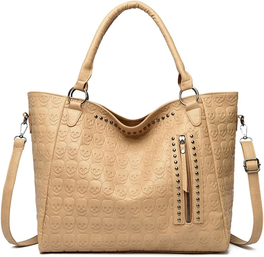 Women Skull Large Tote Bag Rivet Studded Handbag PU Leather Gothic Purse Printing Shoulder Bag Punk Satchel Black | Skull, Large, Rivet Studded, PU Leather, Gothic, Purse, Printing, Punk