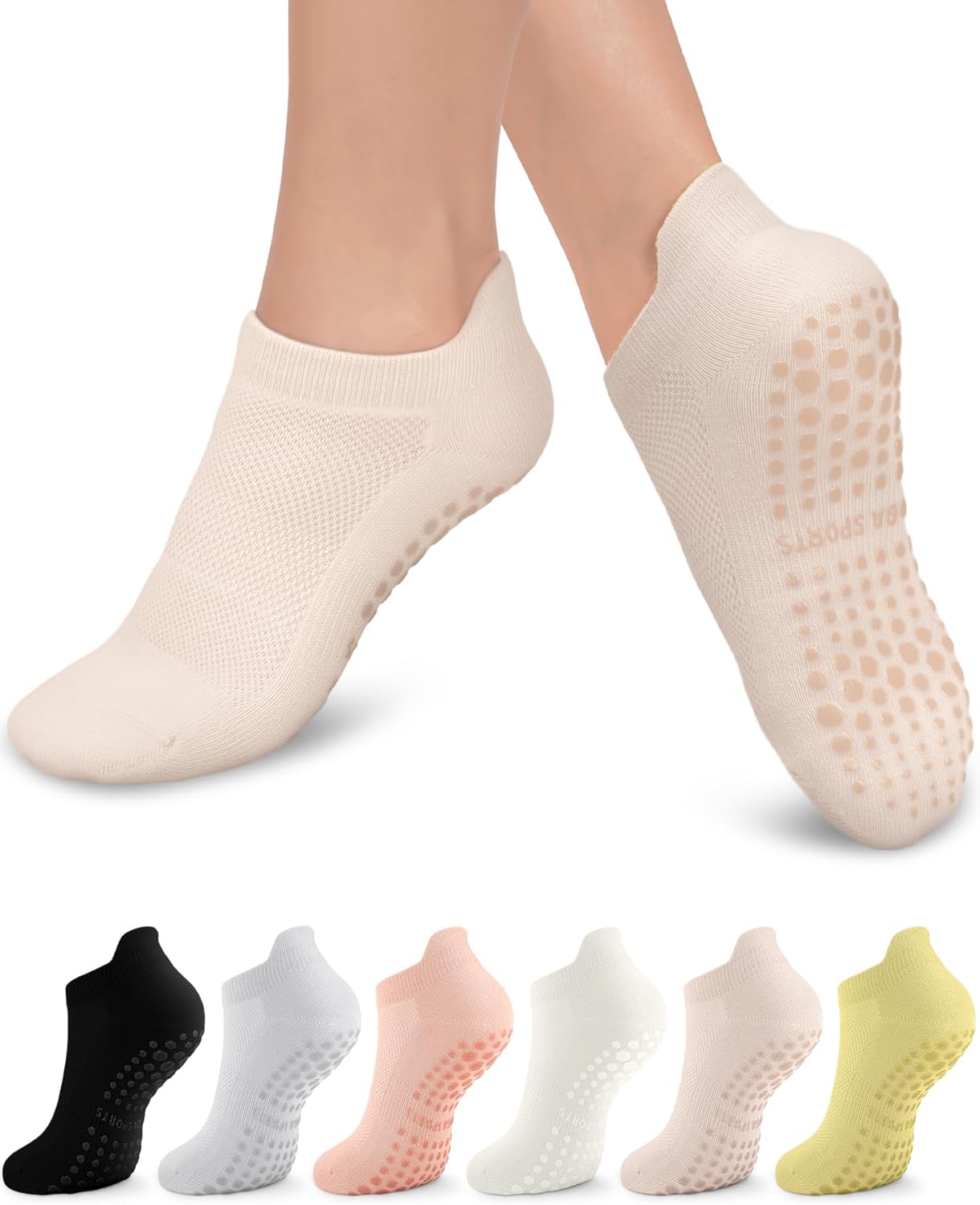 - 🆕SECURE GRIP -- Showcasing non-slip dots on the socks' soles for enhanced grip. Our grippy socks provide optimal traction, stability, and comfort that ensures your feet stay securely in place on the mat or equipment. Say goodbye to slipping and sliding – maintain your secure foundation.