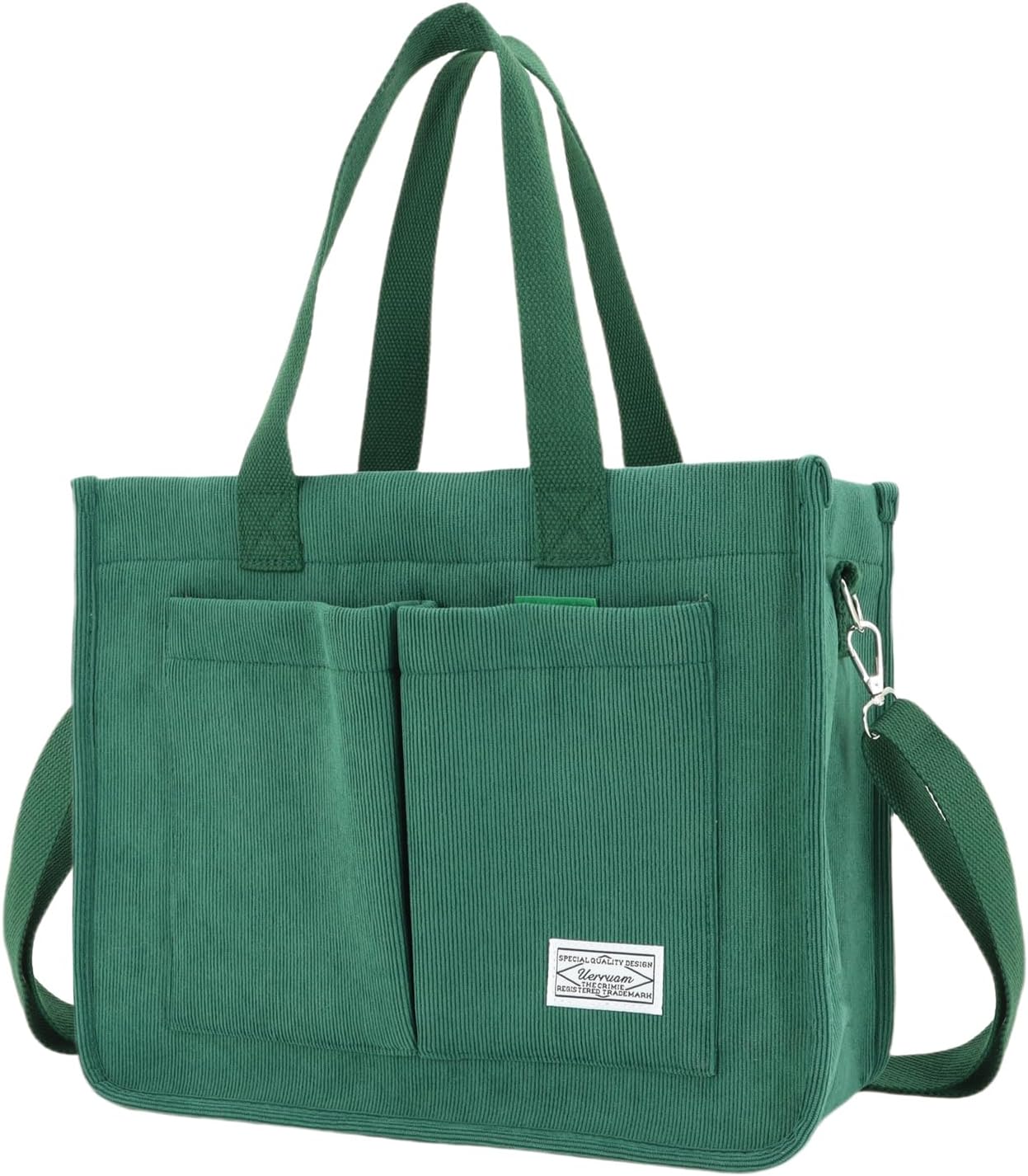 UERRUAM Tote Bag for Women with Pockets,Large Corduroy Crossbody Purse for Laptop,Work,College,Everyday,Travel