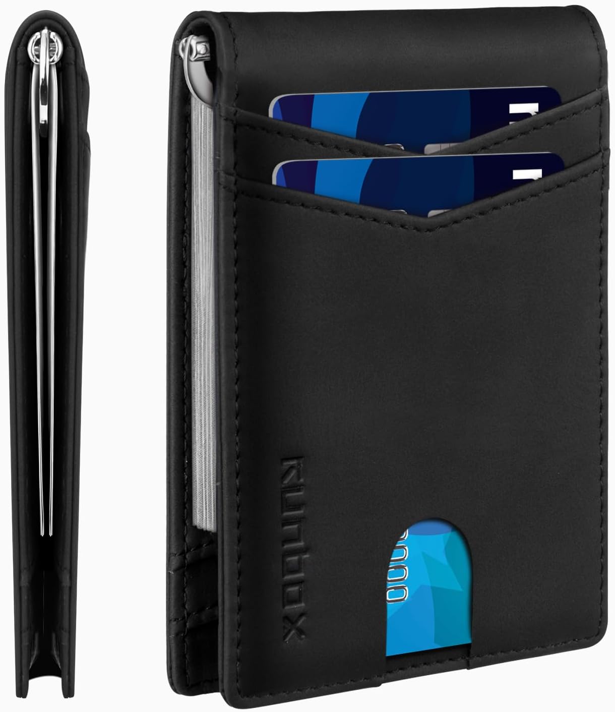 RUNBOX Slim Money Clip Wallets for Men RFID Blocking 8 Card Holder Minimalist Small Thin Carbon Leather Bifold Mens Front Pocket Wallet Gift Box(Charcoal Black)