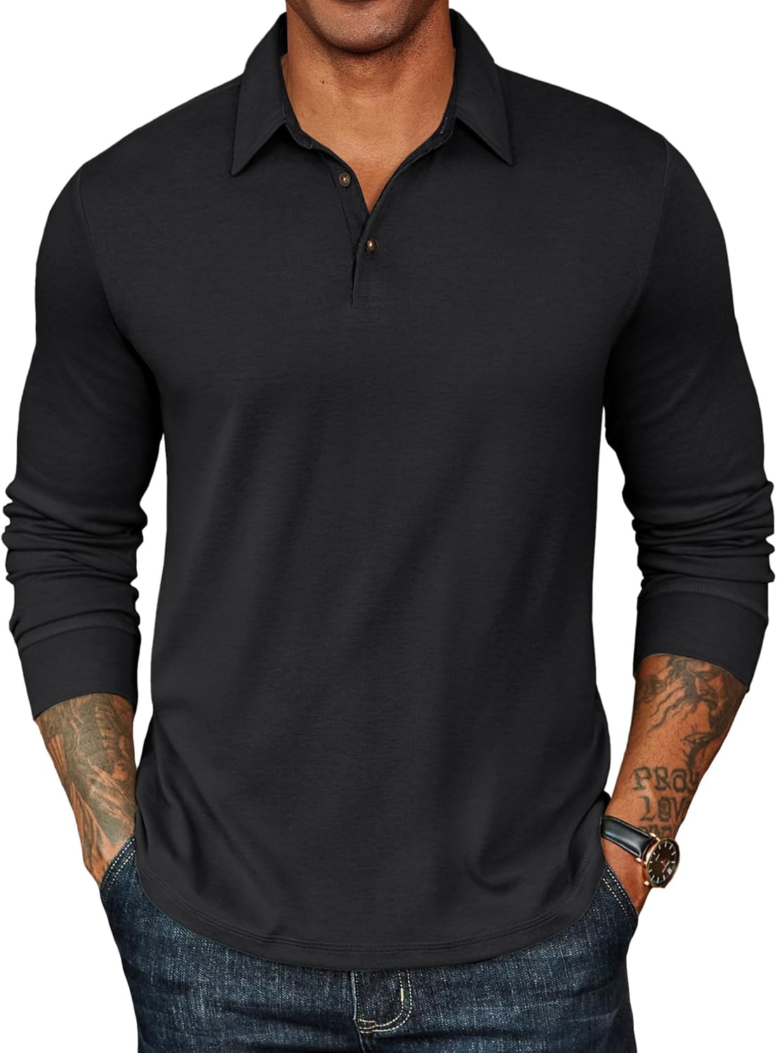 COOFANDY Mens Long Sleeve Polo Shirts Classic Casual Button Polo Tee Lightweight Collared Golf Shirt