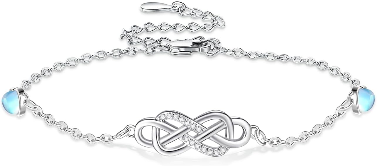 Infinity Bracelet for Women 925 Sterling Silver heart Shaped Moonstone Adjustable Bracelet Infinity Jewelry Birthday Christmas Valentine’s Day Mother's Day Gifts for Mom Women
