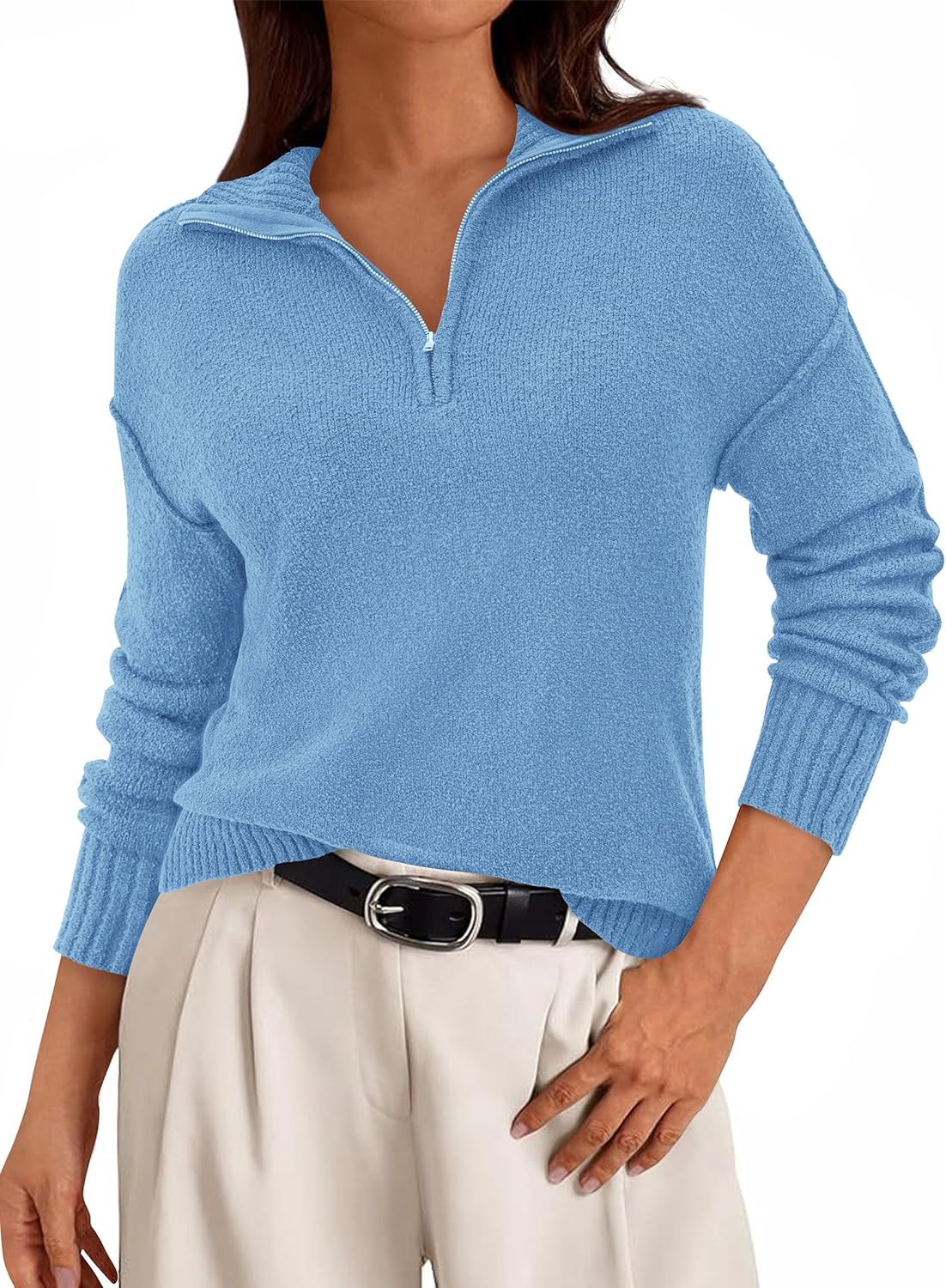 PRETTYGARDEN Women's Fall Quarter Zip Pullover Sweaters 2026 Dressy Casual Long Sleeve V Neck Collared Knit Jumper Tops