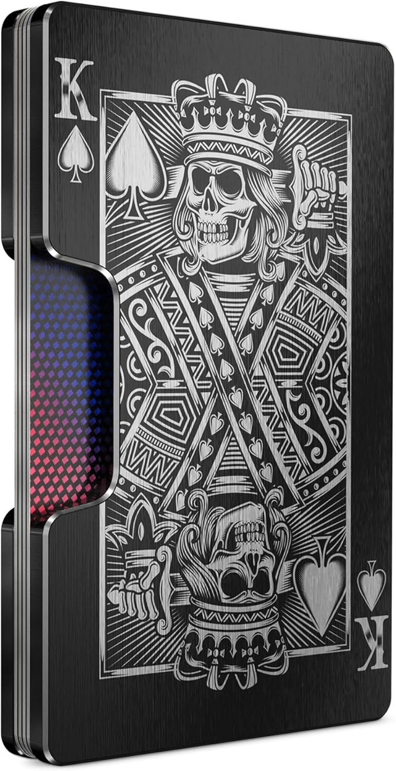 - ANTI-THEFT RFID BLOCKING: The Blade compact metal wallet blocks RFID skimming to help keep your chipped debit, bank, and credit card information safe and secure. Minimalist wallet for men. Aluminum durable and strong solid wallets with cool designs making it the perfect small front pocket wallet for men. This metal RFID men’s wallet protects your sensitive card information from digital thieves. It keeps your cards safe, making it a perfect slim metal wallet for those concerned about security.