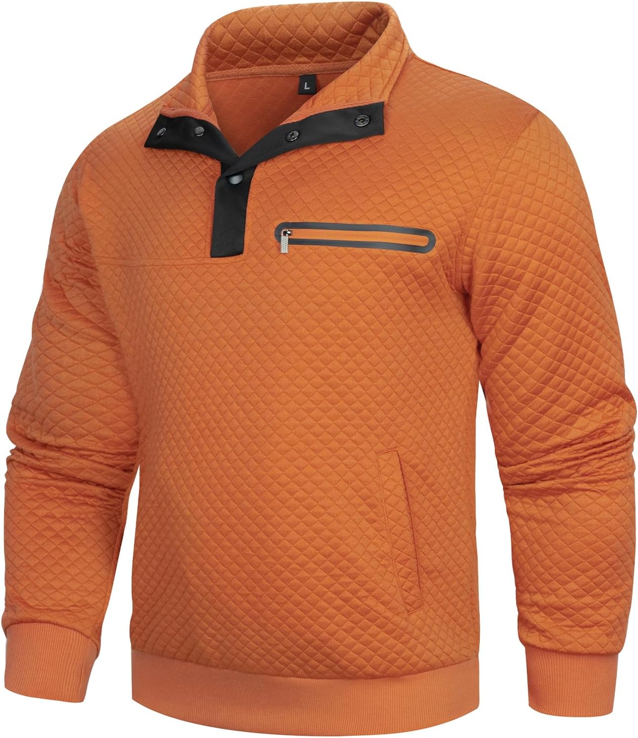 Casual Sweatshirts for Men Pullover Mens Long Sleeve Button Stand Collar Quilted Sweatshirt with Pocket