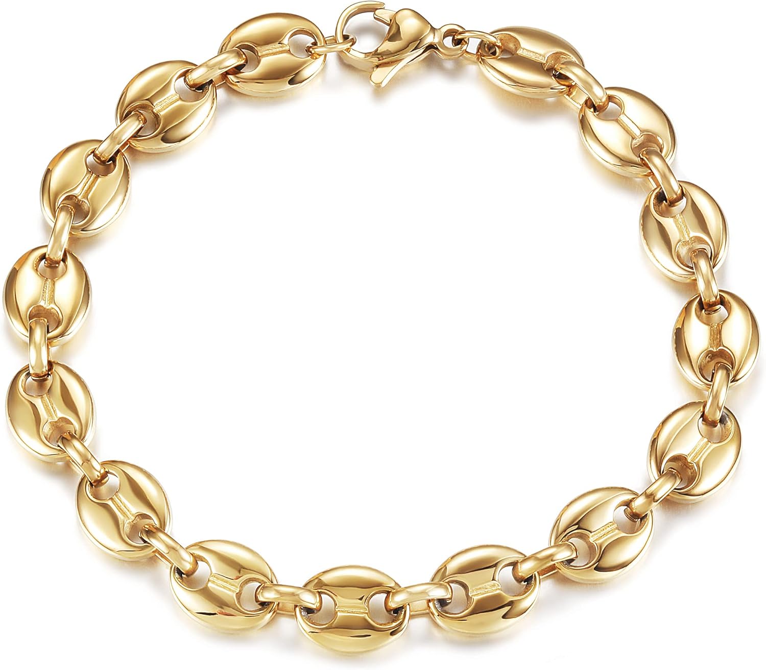Coffee Bean Bracelets Stacked Link for Women Adjustable Gold Plated Stainless Steel Link Charm Chain for Men and Adults Fashion Gift