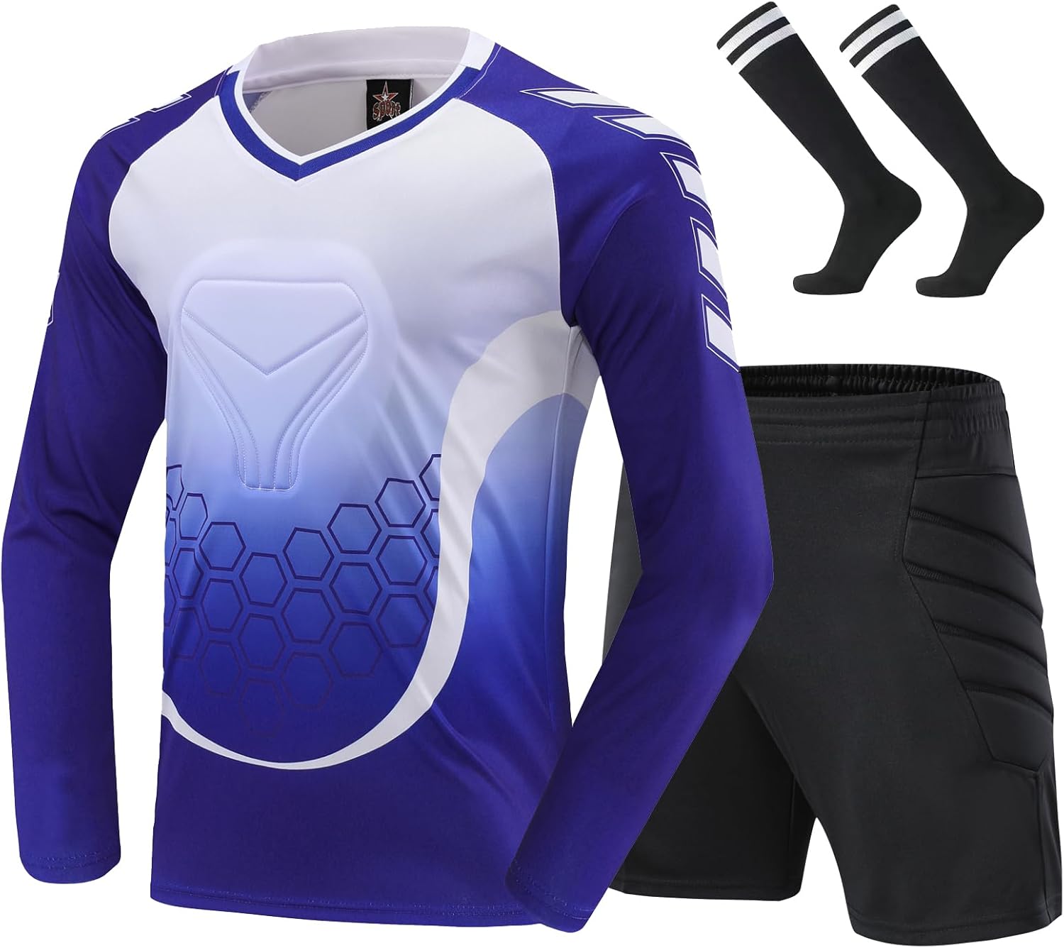 Kids Soccer Goalie Jersey and Shorts,Youth/Boys Long Sleeve Shirt Soccer Goalkeeper Jersey