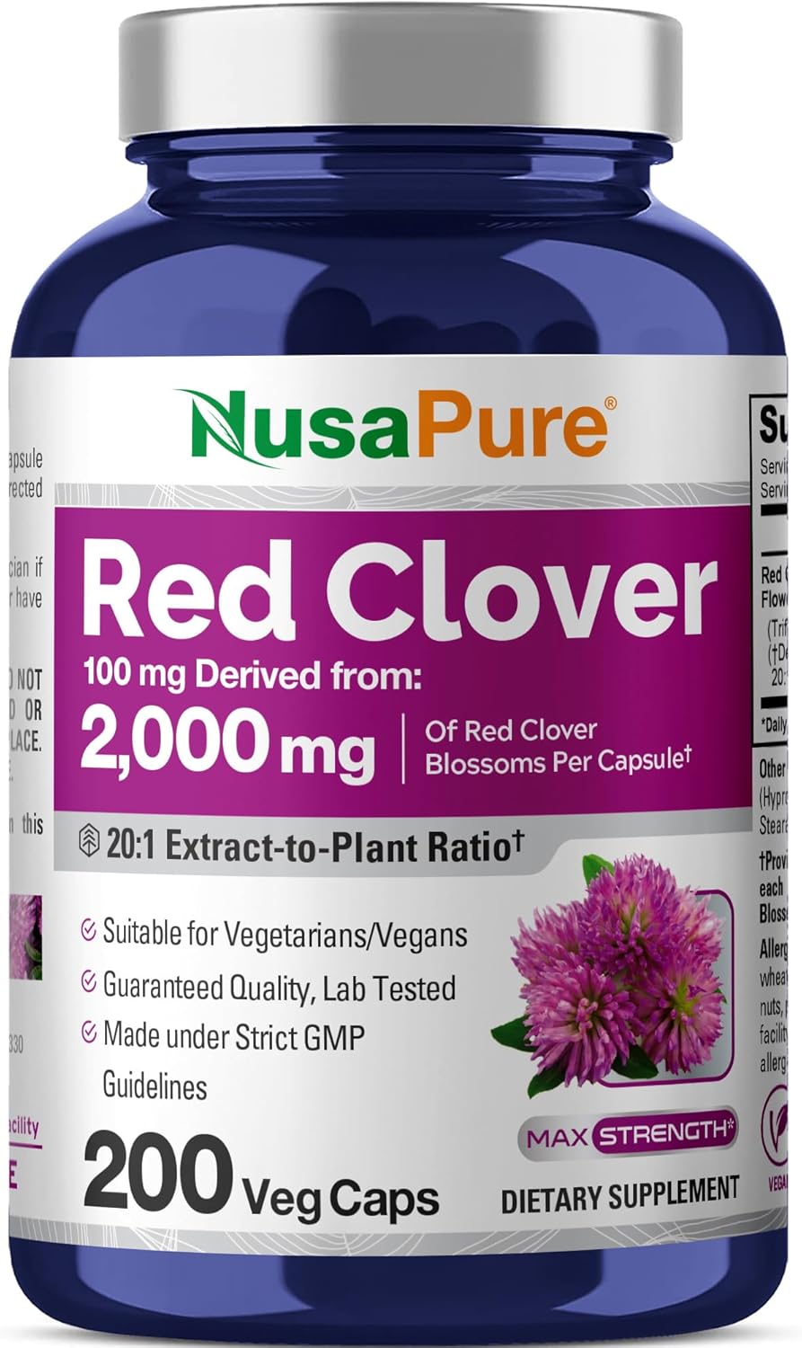 - 100 mg derived from 2,000 mg of Red Clover Blossoms, 20:1 Extract, and provides 200 servings per container.