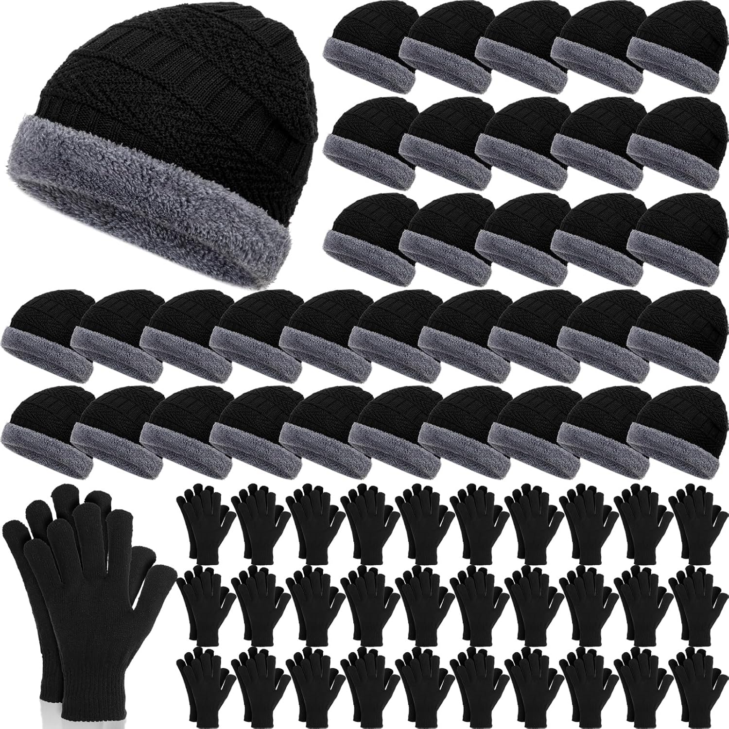 Suhine 40/110 Pcs Winter Hats and Gloves Bulk for Men Women Fleece Lined Beanie & Glove Set Unisex Hats Gloves for Homeless