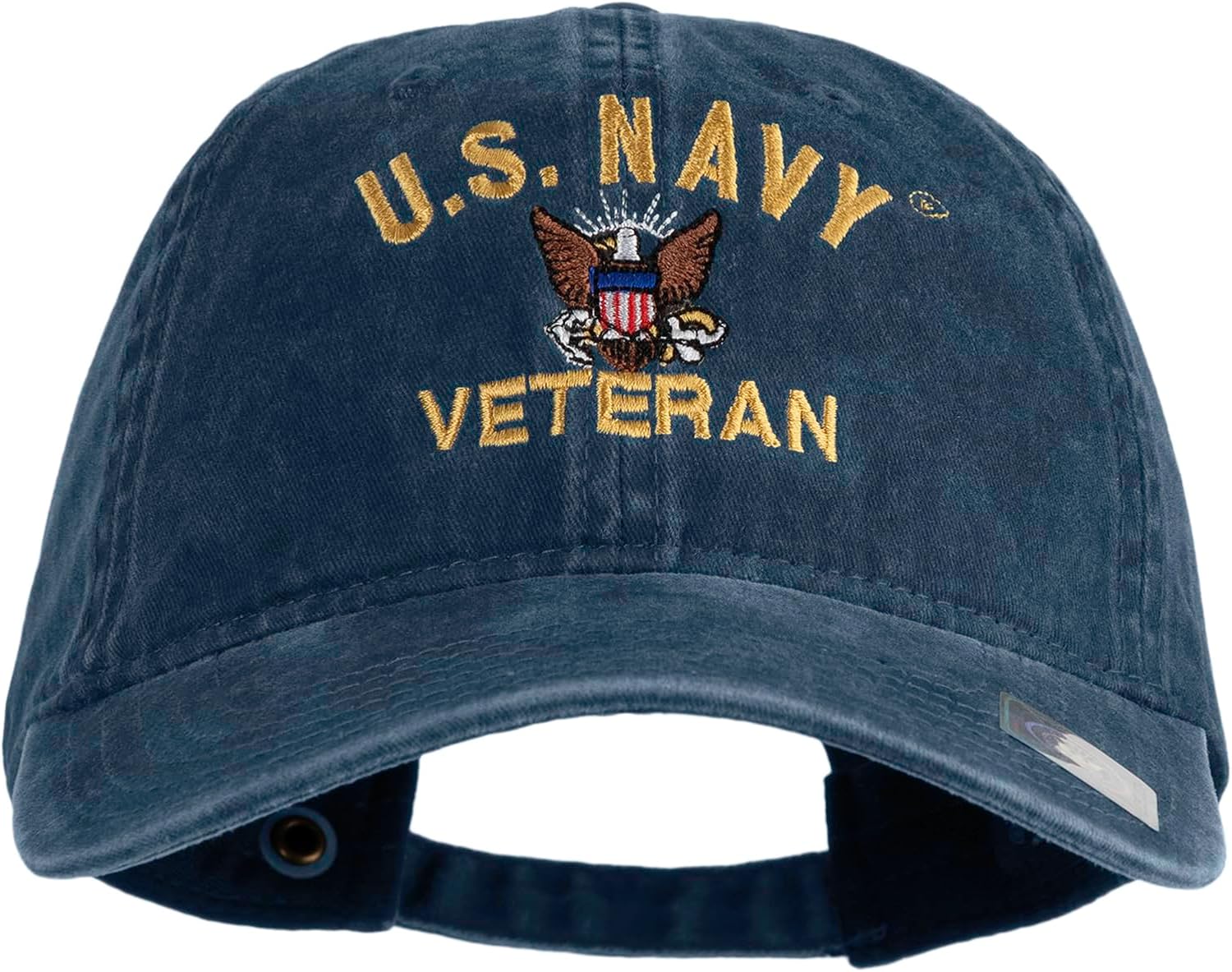 e4Hats.com US Navy Veteran Military Embroidered Washed Solid Pigment Dyed Cotton Twill Brass Buckle Cap