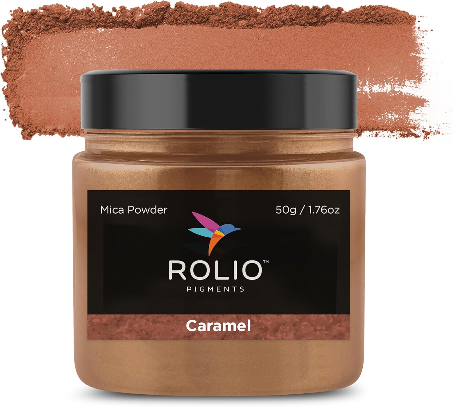 Rolio Premium Mica Powder - Caramel (50G / 1.76oz) - 1 Jar of Brown Pigment Powder for Epoxy Resin, Dye, Soap Making, Nail Polish, Paint, Candle Making, Bath Bombs, Slime