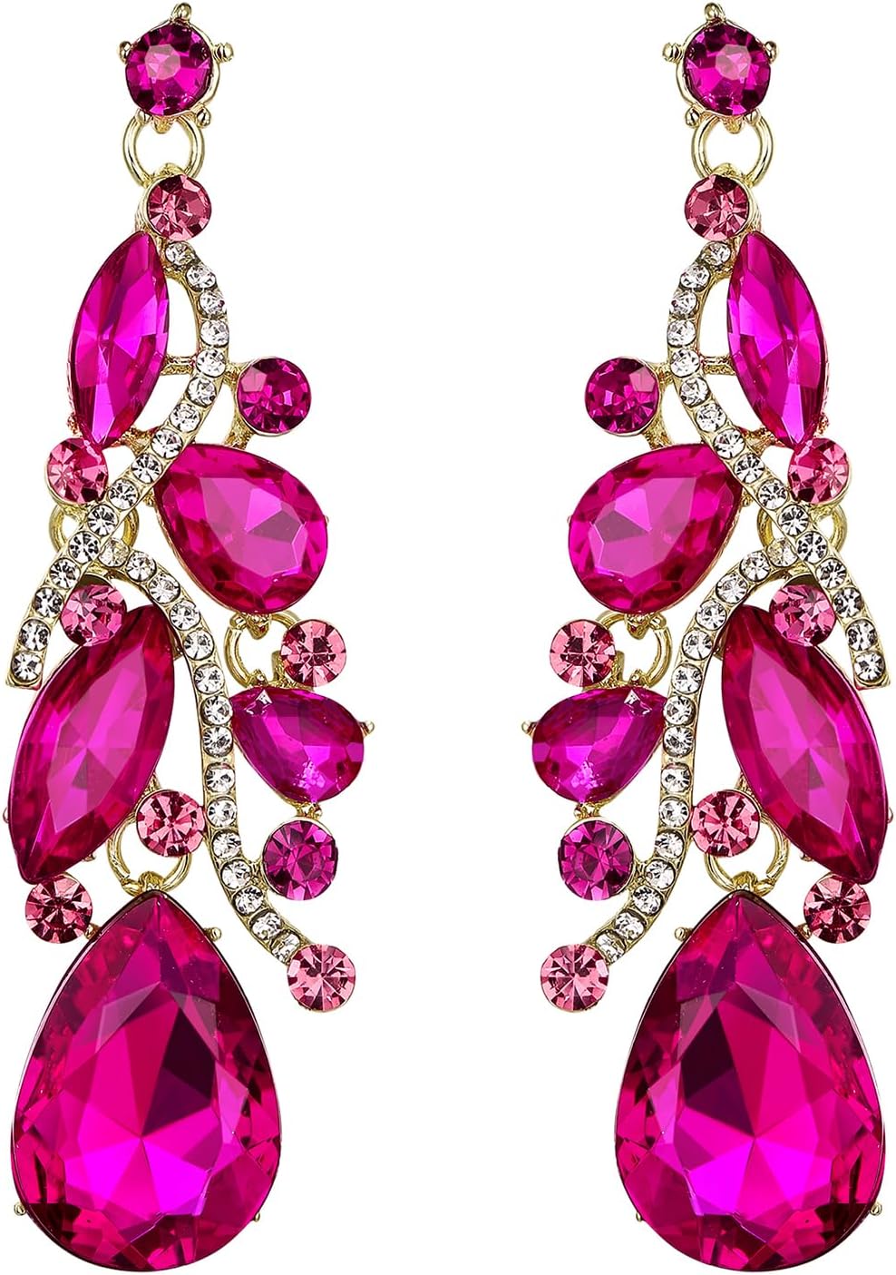 BriLove Women's Bohemian Boho Crystal Multi Teardrop Filigree Cluster Chandelier Dangle Earrings