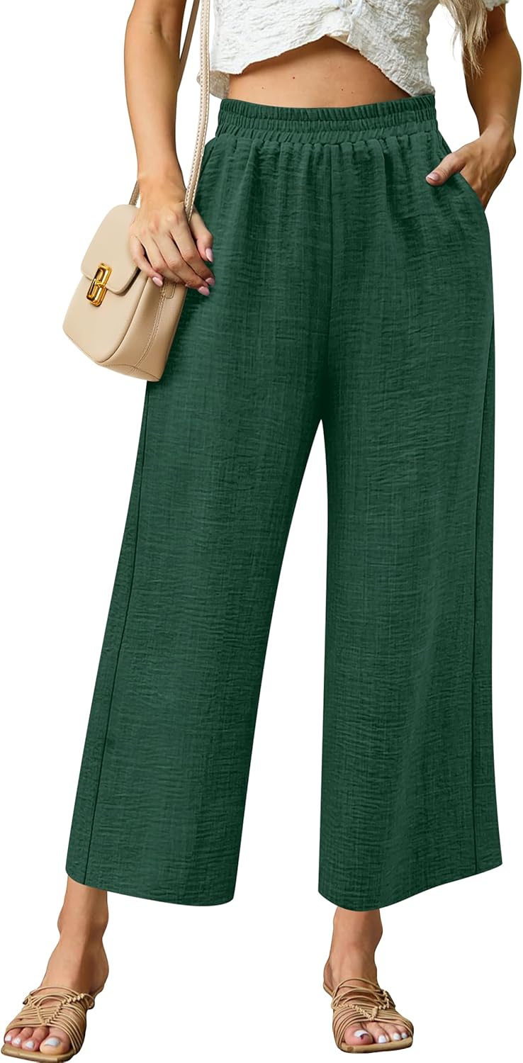 Womens Wide Leg Capri Pants Summer Palazzo Dressy Casual Pant Beach Loose High Waist Lounge Trouser with Pockets