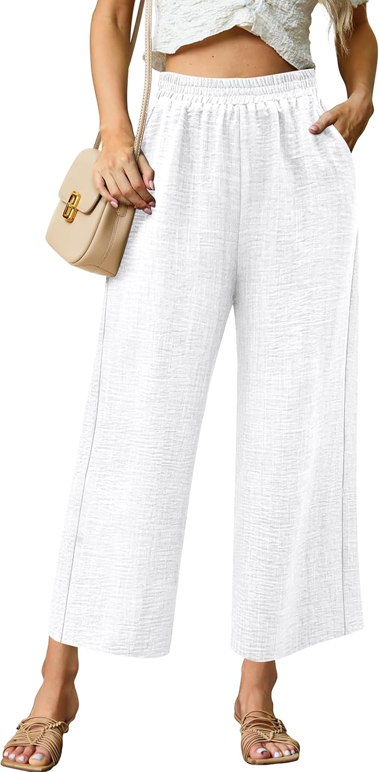 Womens Wide Leg Capri Pants Summer Palazzo Dressy Casual Pant Beach Loose High Waist Lounge Trouser with Pockets