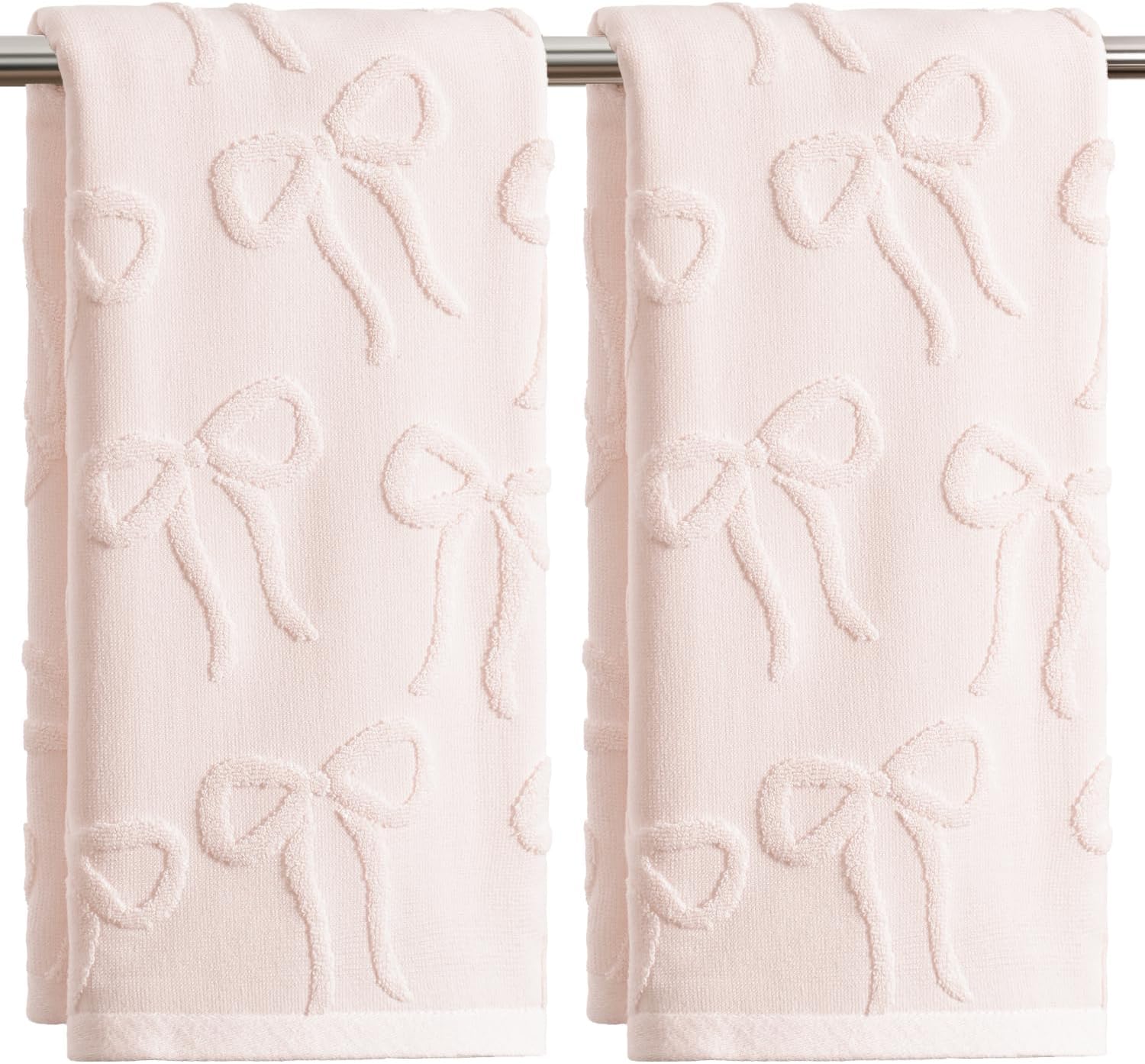 Artoid Mode 2 Pcs Pink 3D Bowknot Jacquard Hand Towels for Bathroom, 100% Cotton Soft Absorbent Bathroom Decor Towels, 13.7 x 29.5 Inch