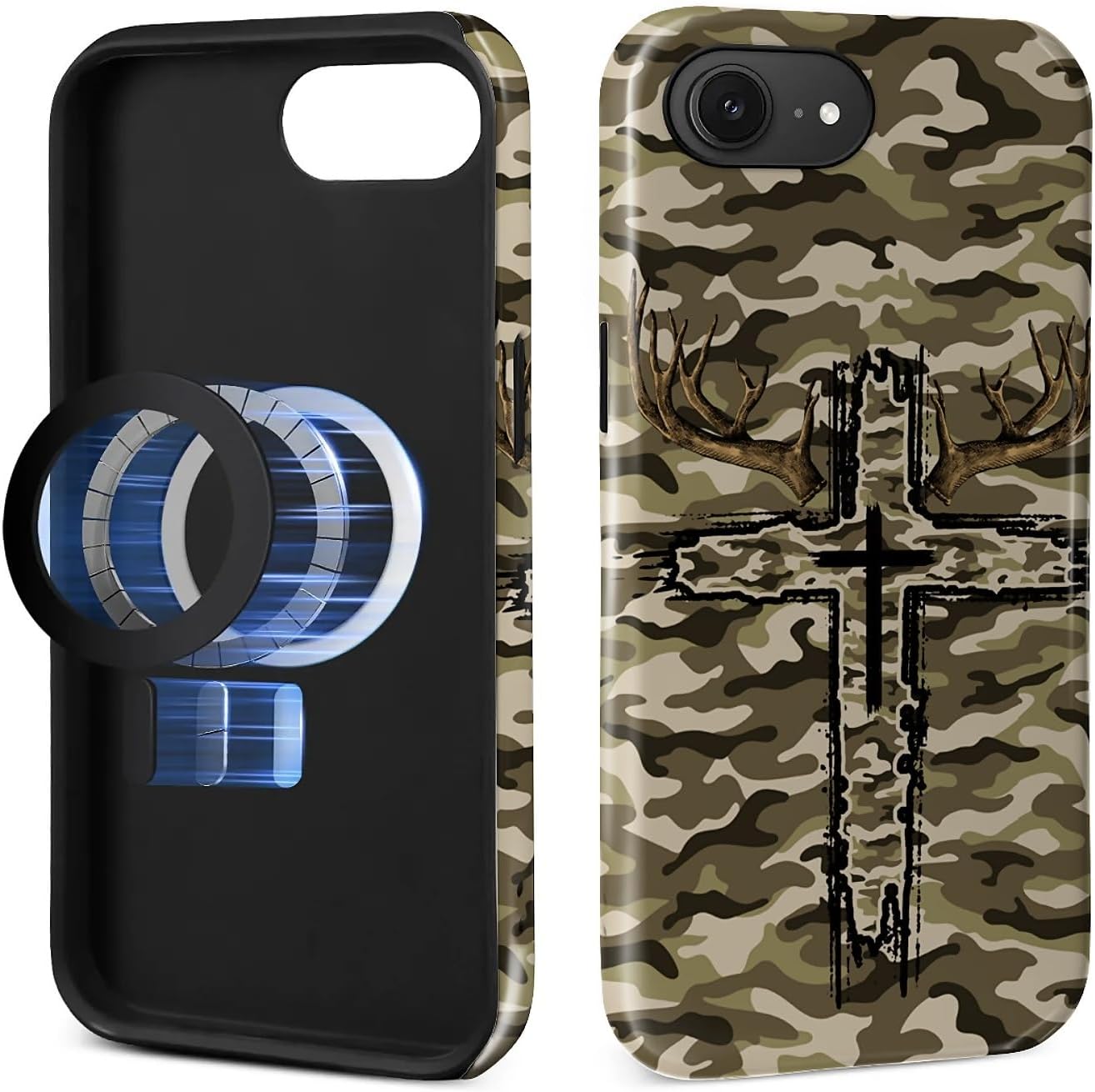 for iPhone 16e Case 2-in-1 Glossy All Inclusive Anti Fall Doublelayer Protection Soft TPU+PC Back Pattern Case Compatible with iPhone 16e 6.1inch for Boys Camouflage Cross