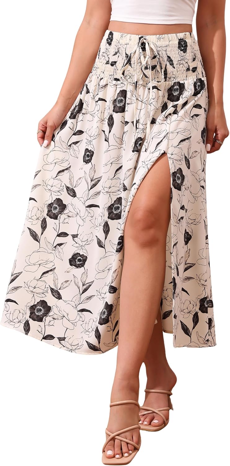 Womens Maxi Skirt Flowy High Waisted Slit Long Skirts Boho Floral Pleated A-Line Beach Dress 2026 Summer Outfit