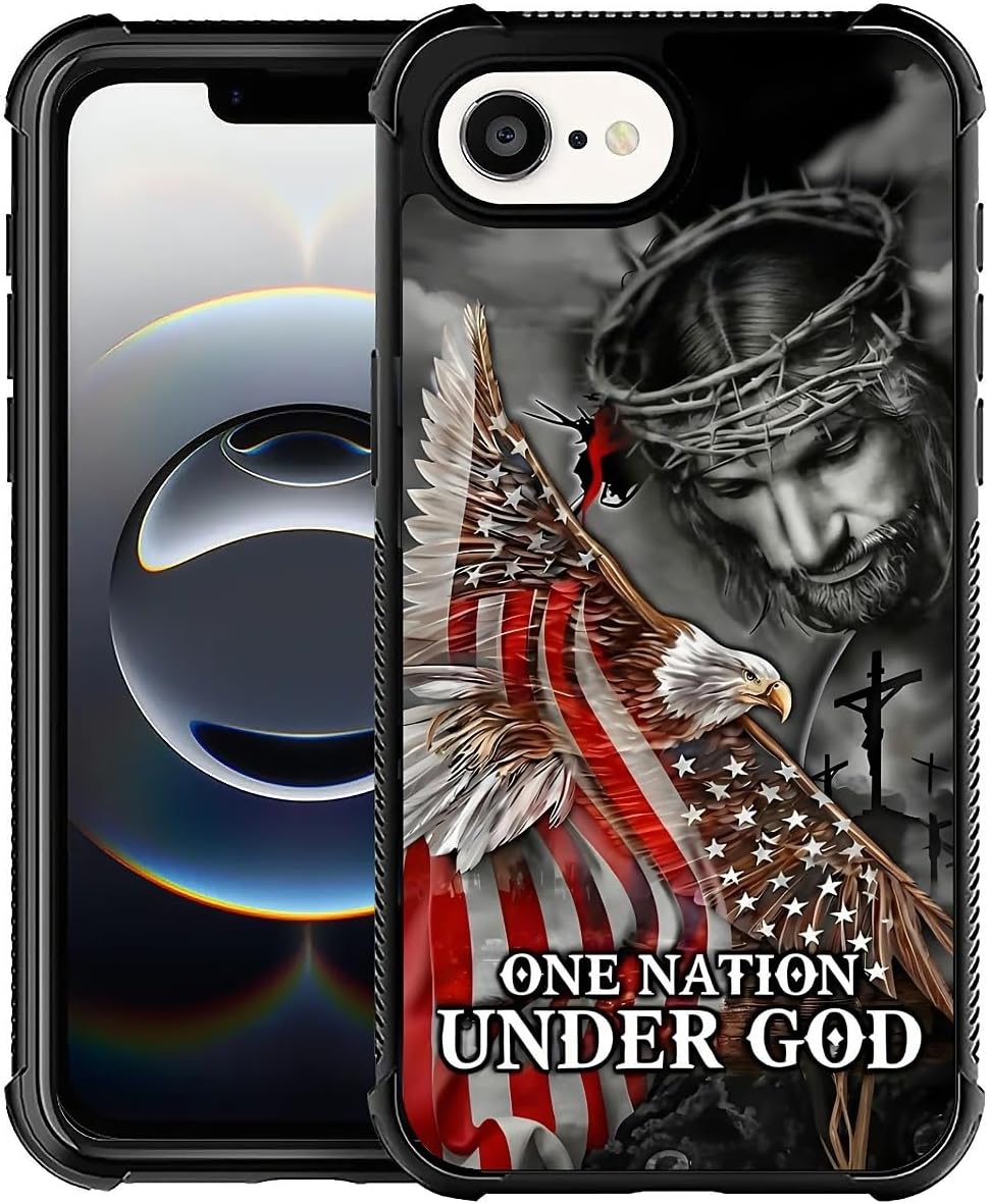 Case for iPhone 16e 6.1 inch,Four Corner Airbag Protection Design Soft Silicone Frame Personalized Pattern Case Compatible with iPhone 16e for Men-Jesus Eagle Flag
