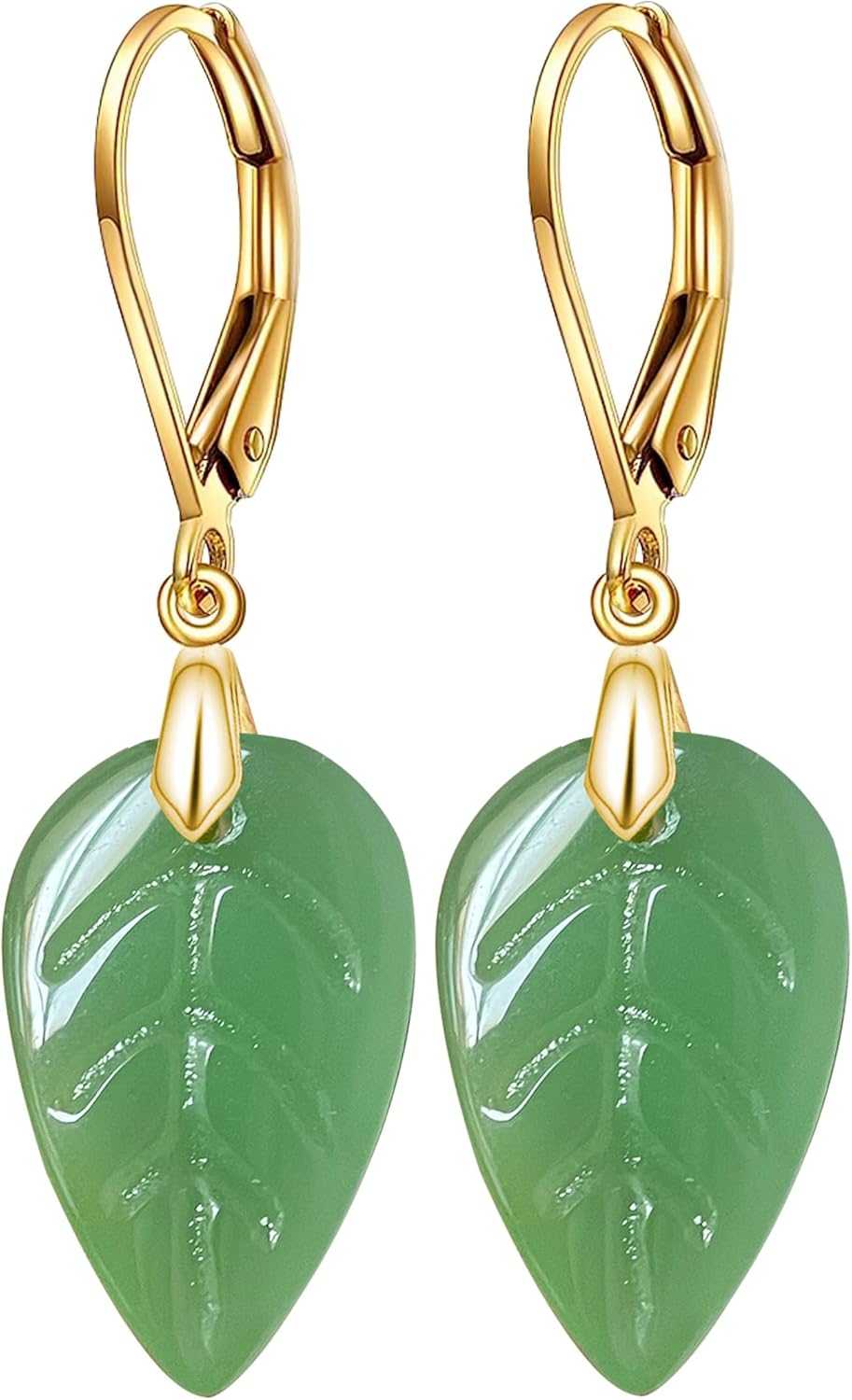 Natural Stone Drop Earrings,Yellow Gold Plated Real Crystal Quartz Jade Leaf Waterdrop Square Gemstone Dangle Earrings for Women Her