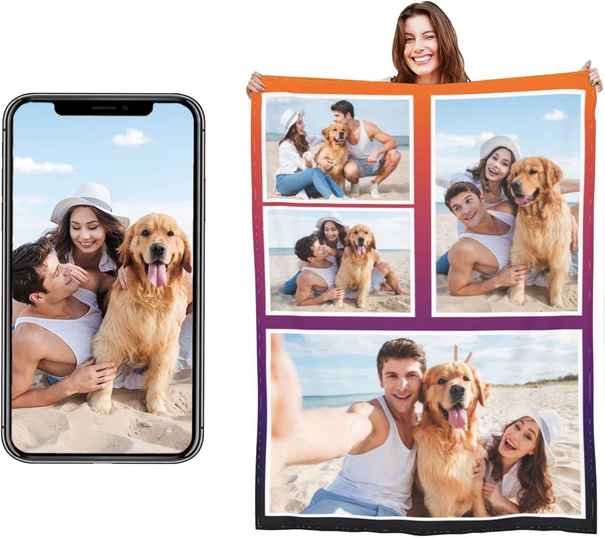 - Custom Blankets: Custom blankets with photos and text. Click Customize Now to upload photos of family, newborns, babies, friends, dogs, cats and other pets. Bring beautiful photo collages to life and we'll turn your warm memories into a unique throw blanket.