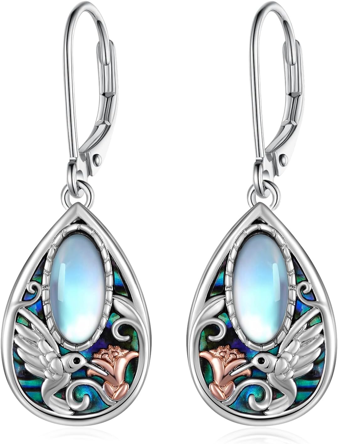 Hummingbird Earrings Sterling Silver Teardrop Abalone Shell Bird Dangle Earrings Hummingbird Jewelry Gifts for Women