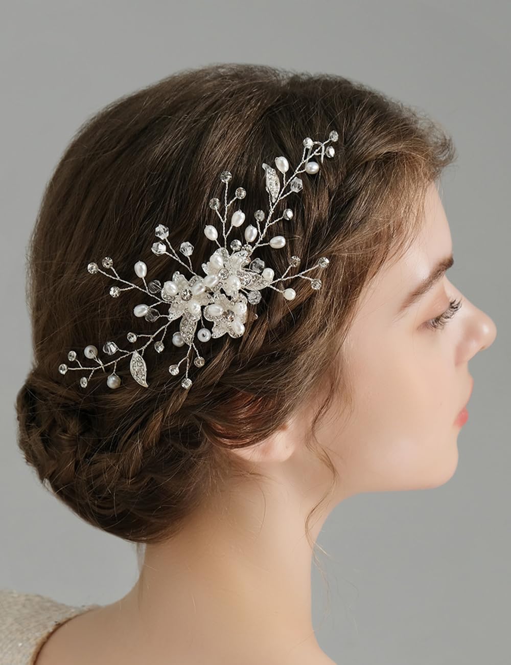 - Elegant and exquisite design:Silver leaf flower pearl hair comb adorned with sparkling rhinestones,unique design and exquisite craftsmanship add charm to your outfit.