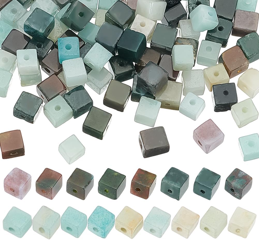 PH PandaHall 2 Styles Natural Stone Beads 85pcs Cube Agate & Amazonite Beads 4-5mm Square Spacer Beads for Jewelry Making DIY Craft Bracelet Necklace