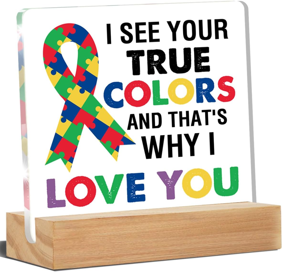 Autism Awareness Sign, Autism Desk Decor I See Your True Colors and That's Why I Love You Acrylic Desk Plaque Sign Home Office Bedroom Decoration 4 x 4 Inches