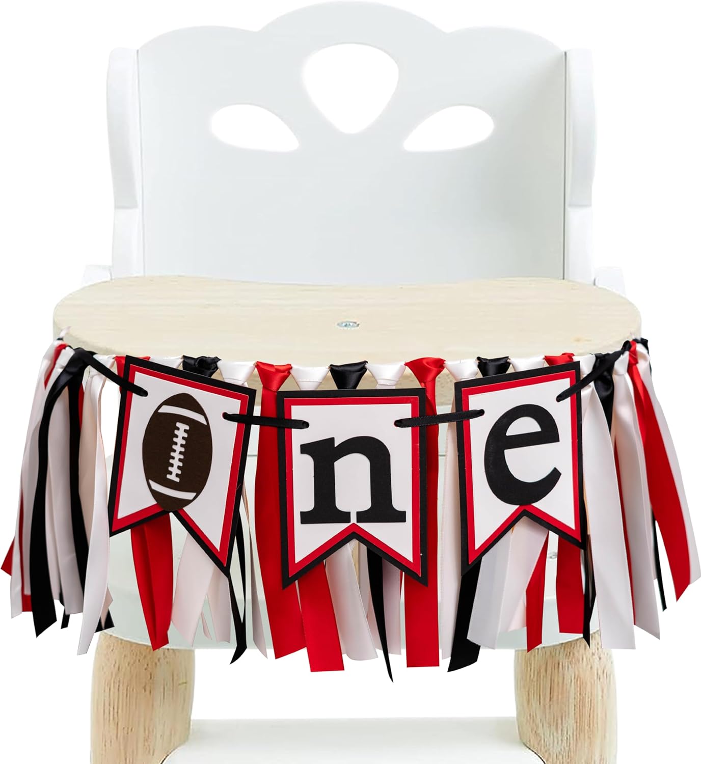 - FOOTBALL HIGHCHAIR BANNER - Celebrate with this charming football party garland, the perfect accessory for your child's birthday party, it fits perfectly with the "football" theme and you'll love it. Perfect for football 1st birthday parties, sports themed birthday banners, photo props, high chairs or nursery decorations.