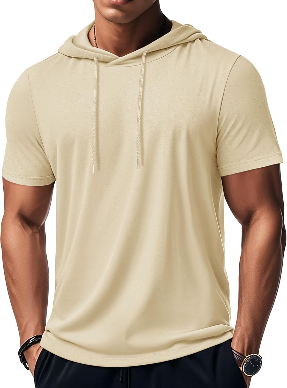 MAGCOMSEN Men's Short Sleeve Hoodie Workout Gym Athletic Cotton Lightweight Hooded T Shirts Sweatshirt