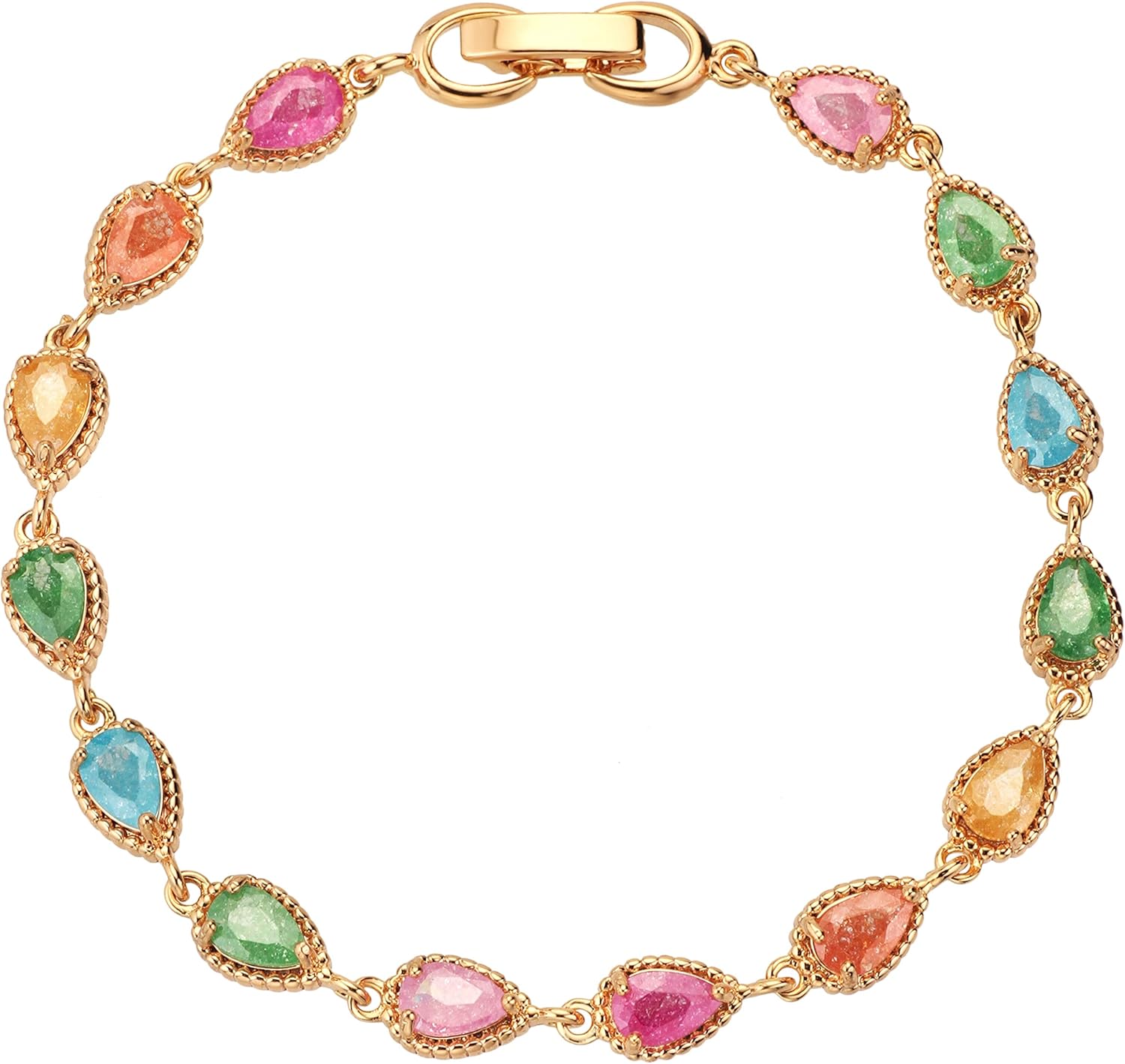 18K Gold Plated Cubic Zirconia Tennis Bracelet Shimmering Rainbow Textured Charm Bracelet for Women Fashion Jewelry