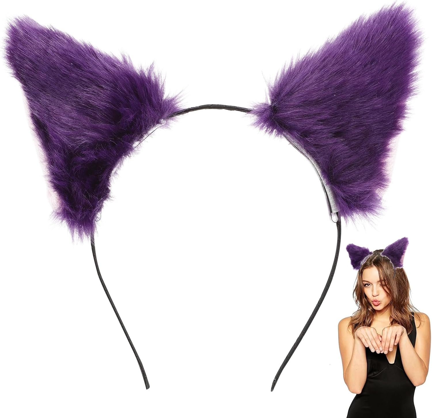 PartyKindom Cat Ears Headband for Womens: Christmas Headband Cosplay Costumes Prop for Girls, Fur Animal Ears Hair Hoops for Animal Cosplay Party, Cute Cat Ears Hair Accessories
