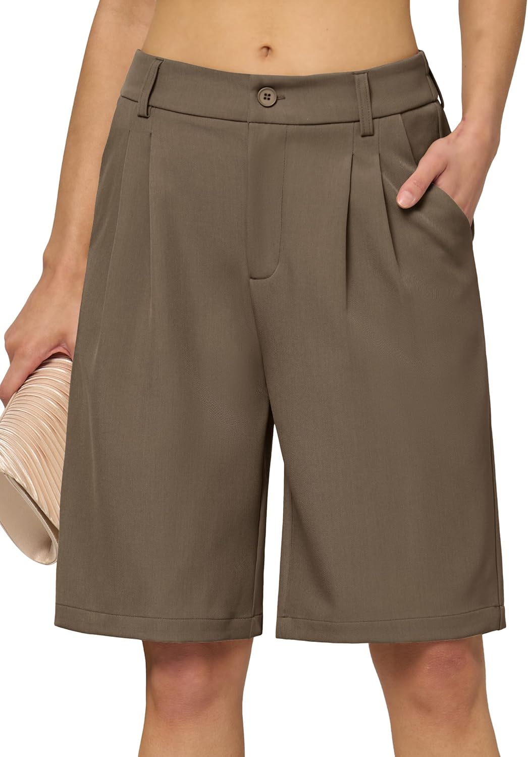 Women's Bermuda Dress Shorts Wide Leg Long Shorts High Waisted Dressy Casual with Pockets 10"